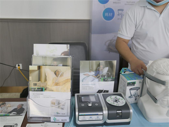 会议结束后,所有与会嘉宾纷纷前往会场外,来到怡和嘉业展台,一同领略我司在家用、医用、耗材以及睡眠呼吸障碍、慢性呼吸系统疾病的整体服务方案等领域所取得科研成果。其中,家用呼吸机包括怡和嘉业GⅡ系列、怡和嘉业 G2S系列、怡和嘉业 G3系列以及怡和嘉业 M1 Mini单水平睡眠呼吸机,医用产品涵盖睡眠监测产品和H-80系列高流量湿化氧疗仪。此外,通气面罩等耗材产品也同家用呼吸机一起被奉为“座上宾”,陈列在展台之上,吸引了到场嘉宾驻足、观看、询问。